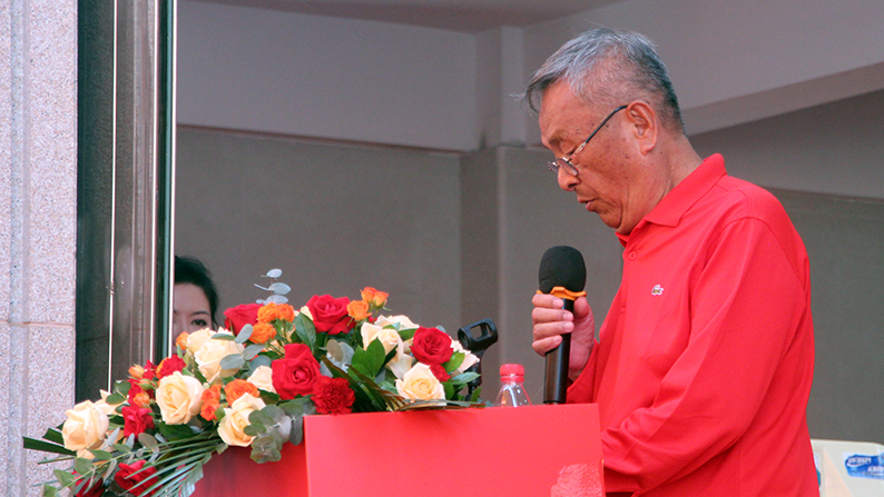 晋江东茂佘氏宗亲会理事长佘栋樑宗亲上台致辞。佘栋樑先生多年来为宗亲会的发展尽心尽力。