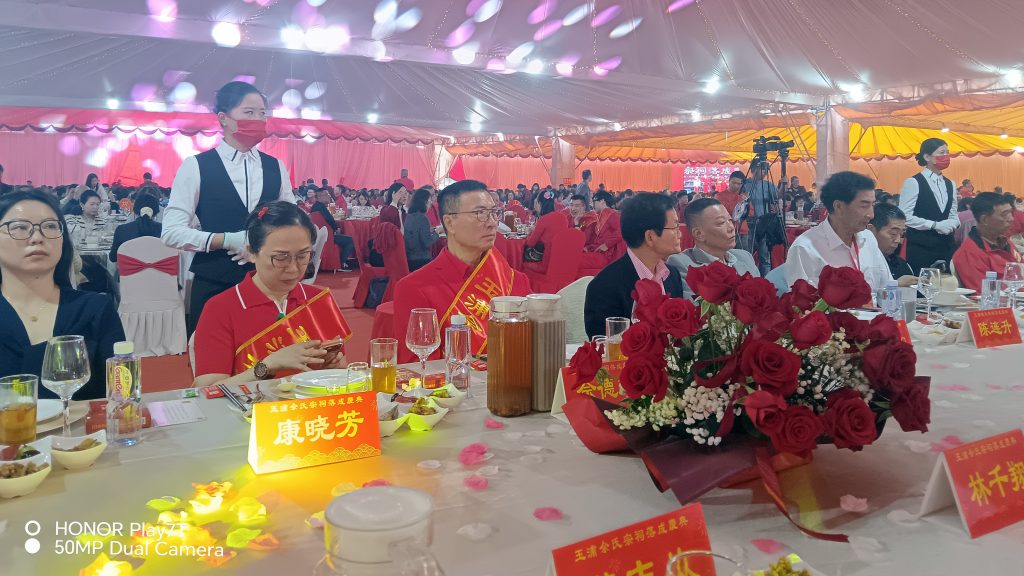 随后,佘德聪会长携家人逐桌敬酒,与宗亲们亲切交谈,现场氛围温馨而热烈。各位嘉宾也纷纷向佘德聪会长回敬美酒,祝贺庆典活动圆满成功,祝愿佘氏家族未来发展越来越好。