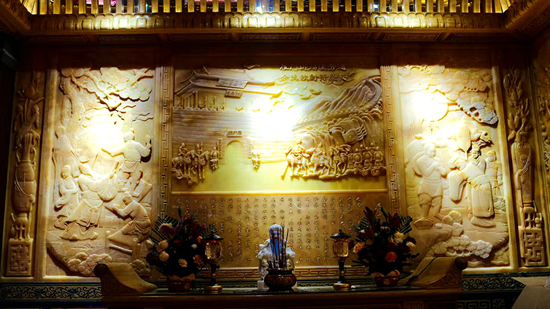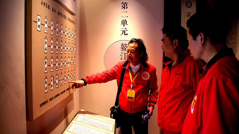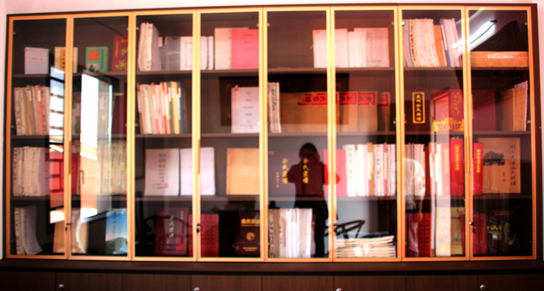 宗祠第二层为福建石狮永宁港边历代家族历史展厅,通过详实的史料、老物件等,系统梳理了家族自起源以来的发展脉络。左侧历代佘氏族谱阅览室:一个实木大柜内装满几百套全国各地佘氏老族谱,让族人更好查阅佘氏历史。