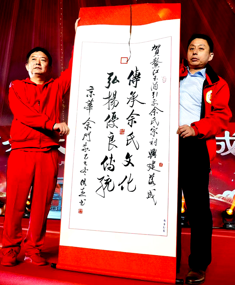 各位宗亲、各位乡贤,宗祠落成是新的起点,传承发展是永恒的使命。世界佘氏宗亲联谊总会始终是全体佘氏宗亲的纽带和坚强后盾,我们将继续搭建好宗亲交流的桥梁,凝聚全球佘氏的智慧和力量,支持各地宗亲的事业发展和文化建设。在此,我也衷心希望玉浦佘氏宗亲以宗祠落成为契机,进一步传承优良家风,团结互助、携手共进,既要守护好这座精神家园,让宗祠成为教化后人、凝聚人心的重要阵地;更要以先祖为榜样,立足家乡、放眼天下,在各自的岗位上建功立业,为家族增光、为家乡添彩、为国家贡献力量!
